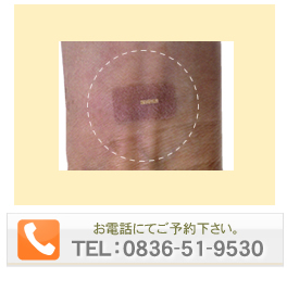 ツボ治療は写真のようなシートの中央に生薬などをしみこませた極小の濾紙を貼り付けたシールを使います。様々な「ツボ」の状態に合わせて貼るシールの種類も変更します。